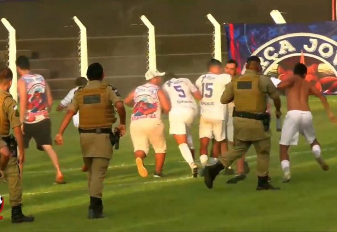 O tumulto começou logo após o apito final, que confirmou o empate do Bela Vista. Revoltados com o resultado, integrantes de uma torcida organizada do Araguaína pularam o alambrado e invadiram o campo para cobrar os jogadores do próprio time.