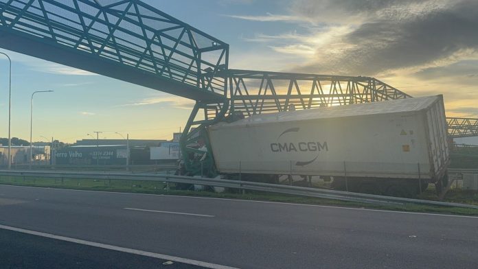 Passarela de pedestres na BR-153 é interditada após ser atingida por caminhão
